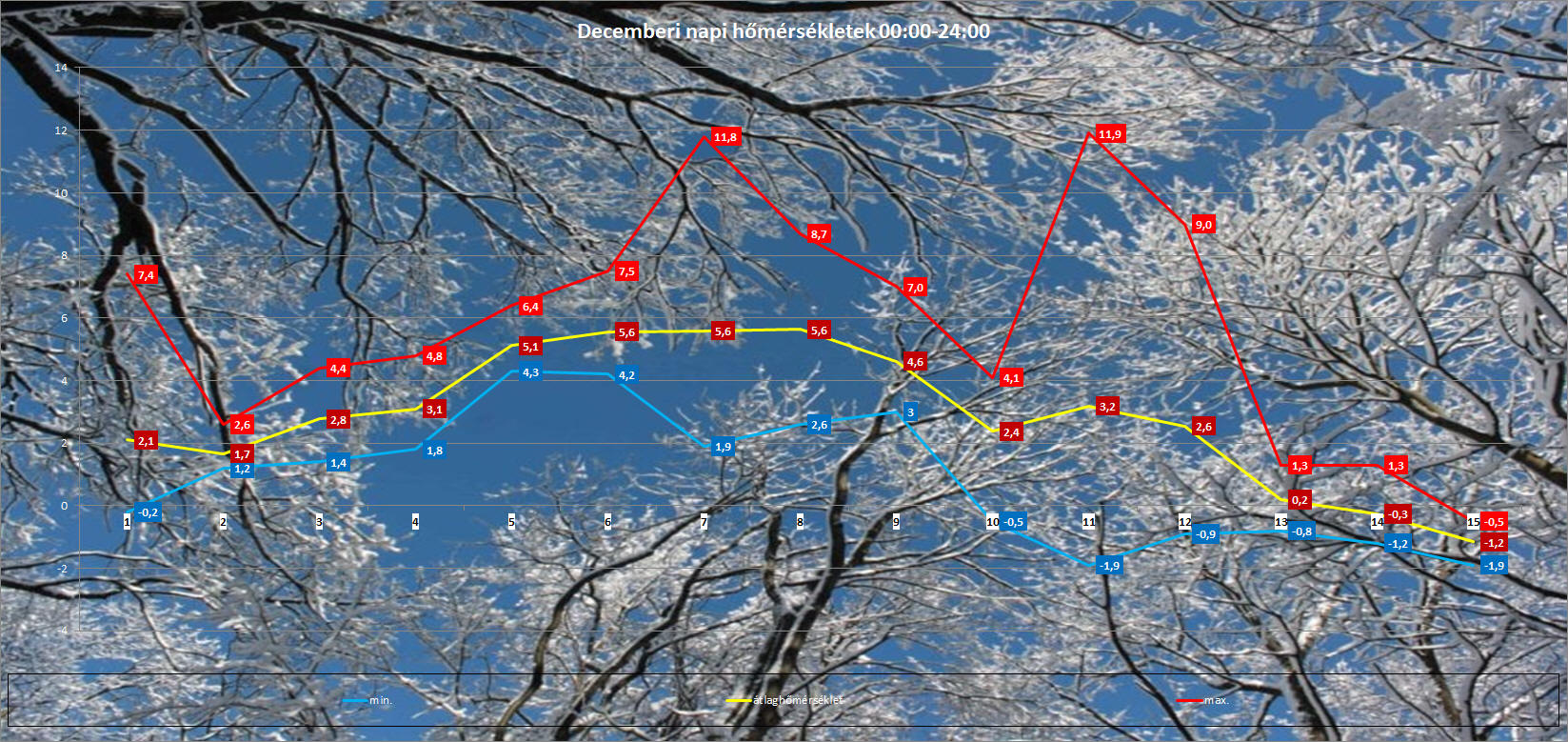 | Napi hőmérsékletek | Éjszakai min., max. hőmérsékletek | Radiációs min. hőmérsékletek | Csapadék mm/ 6:45-6:45 | ||||||||||||||||||||||||||||||||||||||||||||||||||||||||||||||||||||||||||||||||||||||||||||||||||||||||||||||||||||||||||||||||||||||